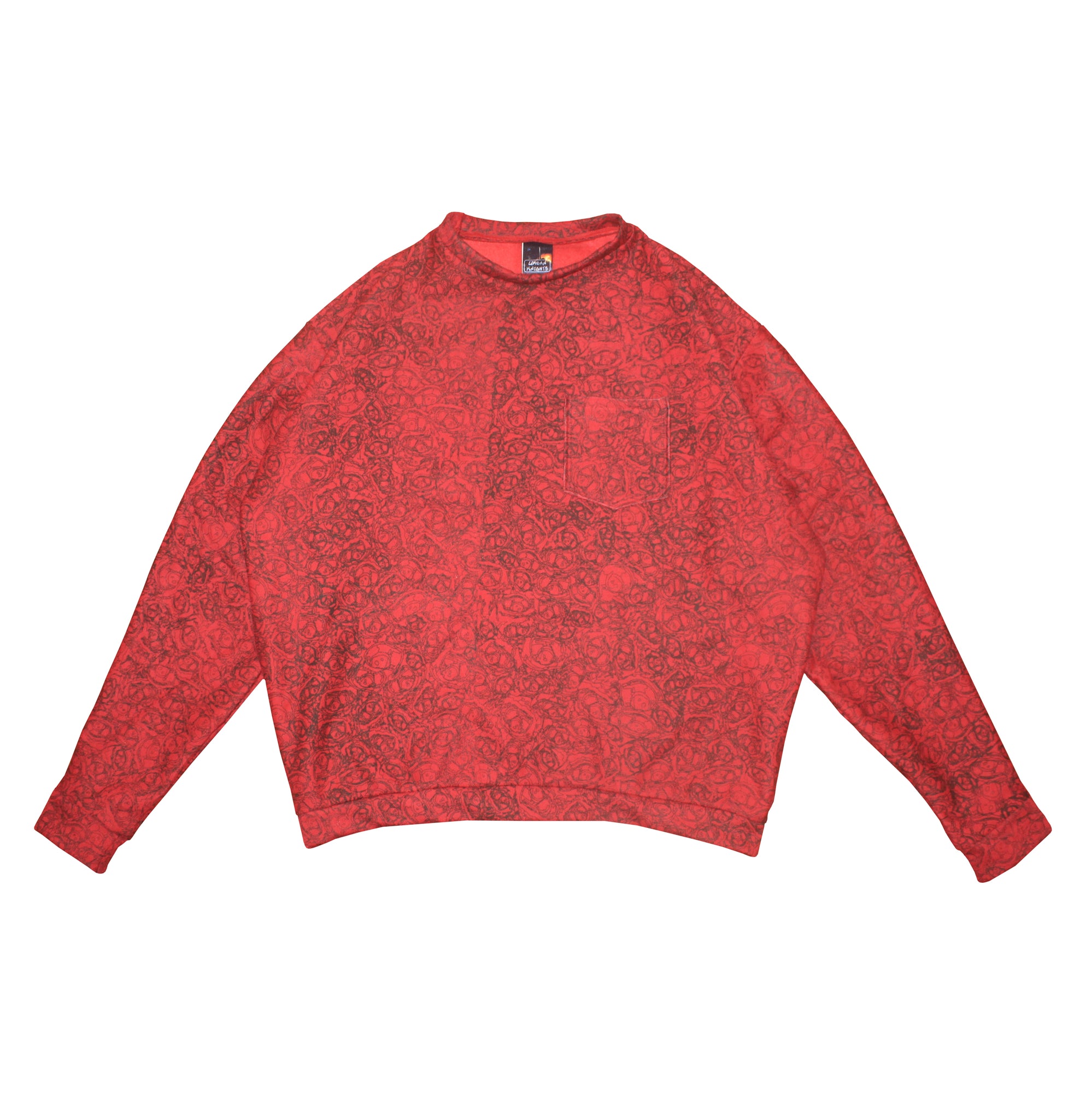The Crookeye crewneck is cut, printed, and sewn 100% in studio using Urban Knight Apparel’s original all over "Crookeye Camo" graphic. The garment features oversized drop shoulders and a mild crop to provide an oversized feel and ensure maximum comfort and versatility. Screen printed in dark red ink on 12 ounce blood red cotton terry.